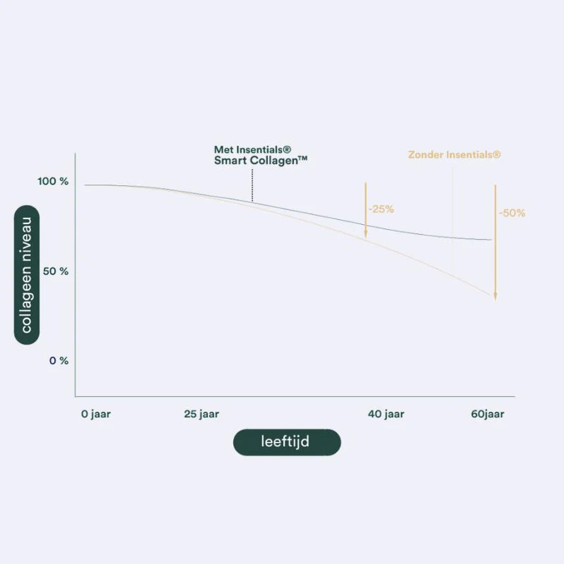 Collageen is een groot eiwit dat je lichaam moeilijk kan opnemen in zijn natuurlijke vorm. Bij Insentials hebben we een uniek productieproces in handen, dat het collageen in kleinere peptiden snijdt, met uitzonderlijke hydrolysatie. Dit zorgt voor een geavanceerde absorptie van 91%, met zichtbare resultaten na 4 weken in gepubliceerde humane wetenschappelijke publicaties.